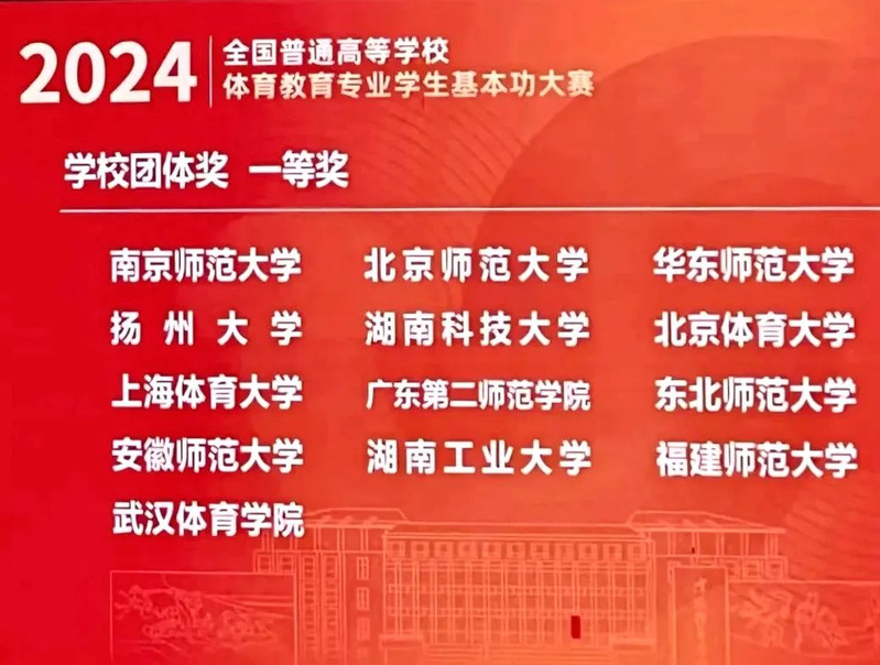 助力南京师范大学夺得全国体育教育专业学生基本功大赛一等奖第一名